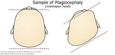 Baby’s with torticollis also require a review of their hips, as developmental dysplasia of the hips is more common for children with torticollis. A health professional should also monitor your baby’s head shape and to the growth of their skull. The skull is made of a number of soft plates joined together. If bub spends too much time in one position, it will squash that part of the skull leaving a flat bit – this is known as plagiocephaly. Correcting the torticollis and allowing more neck movement with distribute pressure more evenly and should help improve plagiocephaly.